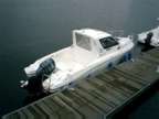 屋根付きトイレ付きのヒット艇です。乗り込んだことはありますが、乗って沖へ出た事はありません。 発売当初、キャラクターとして売りに出されていた『可愛い』船でした。 一度は乗ってみたいと思っていたところへ、いつのまにか、ヤマハのレンタル艇に昇格していました。今度、乗ってみようと思っています。 ただ、この手の『屋根付き』に乗ると、フロントガラス、なかなか見にくいんです。車と違って、ワイパーはあれども役に立たず。また、被る水が塩水(海水)ですから、すぐに汚れ、ガラスが濁って見にくくなります。それで何が困るのかと言うと、蛸壺の目印にされている浮きを見付けにくくなります。タダでさえ見にくい蛸壺の目印が、汚れたガラスごしでは更に見つけにくくなってしまいます。そこら辺、考え物です。
